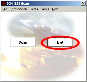 The main home screen contains the menu to allow you to select various functions and the two main buttons, Scan and Exit.