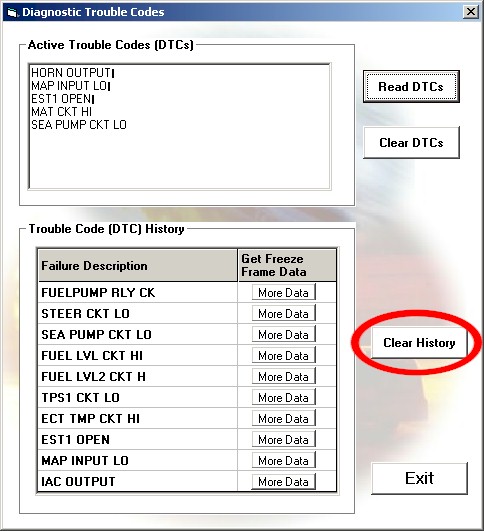 Clearing Stored CodesClick on the button indicated below to clear the stored codes.