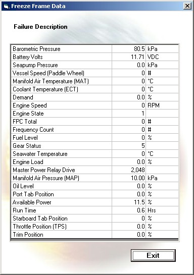 Clicking on this button will launch a screen with the freeze frame data for that code.