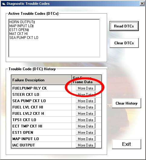 Reading Freeze Frame DataYou will note next to each of the the stored codes is a button for More Data.