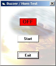 Click the start button to start the test. The ON/OFF light will cycle, indicating the status of the horn relay. The test will continue until the Stop button is pressed