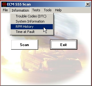 The RPM History item displays a chart of the the time the engine has spent running at various RPM levels since that last reset. It also allows you to reset the RPM history.