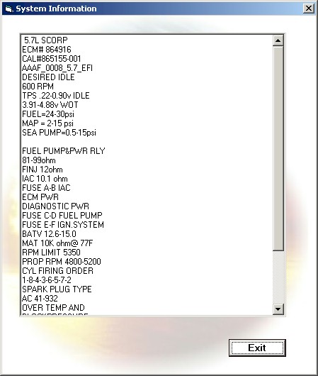 This screen shows summary information about the way the ECM is configures for the engine it is running on.