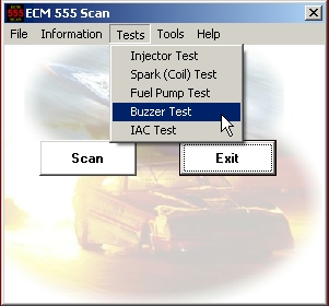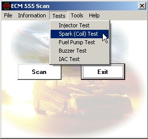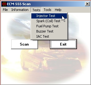 The Tests Menu allows access to several tests that can be performed to exercise various subsystems on the ECM